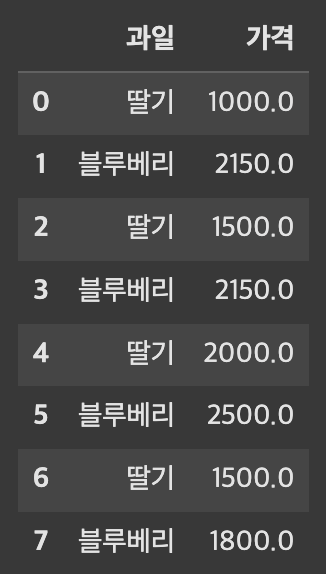 '과일': ['딸기', '블루베리', '딸기', '블루베리', '딸기', '블루베리', '딸기', '블루베리'],