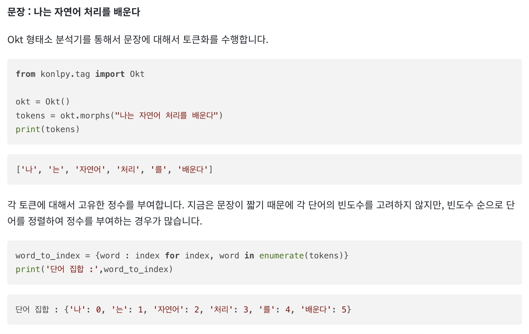 원핫 인코딩은 단어 집합의 크기를 벡터의 차원으로 만들어 표현하고 싶은 단어의 인덱스에 1의 값을 부여하고, 다른 인덱스에는 0을 부여하는 단어의 벡터 표현 방식이다. 문자 데이터를 컬럼으로 바꾸고 0이나 1 혹은 True나 False로 값을 지정하는 방식이다.